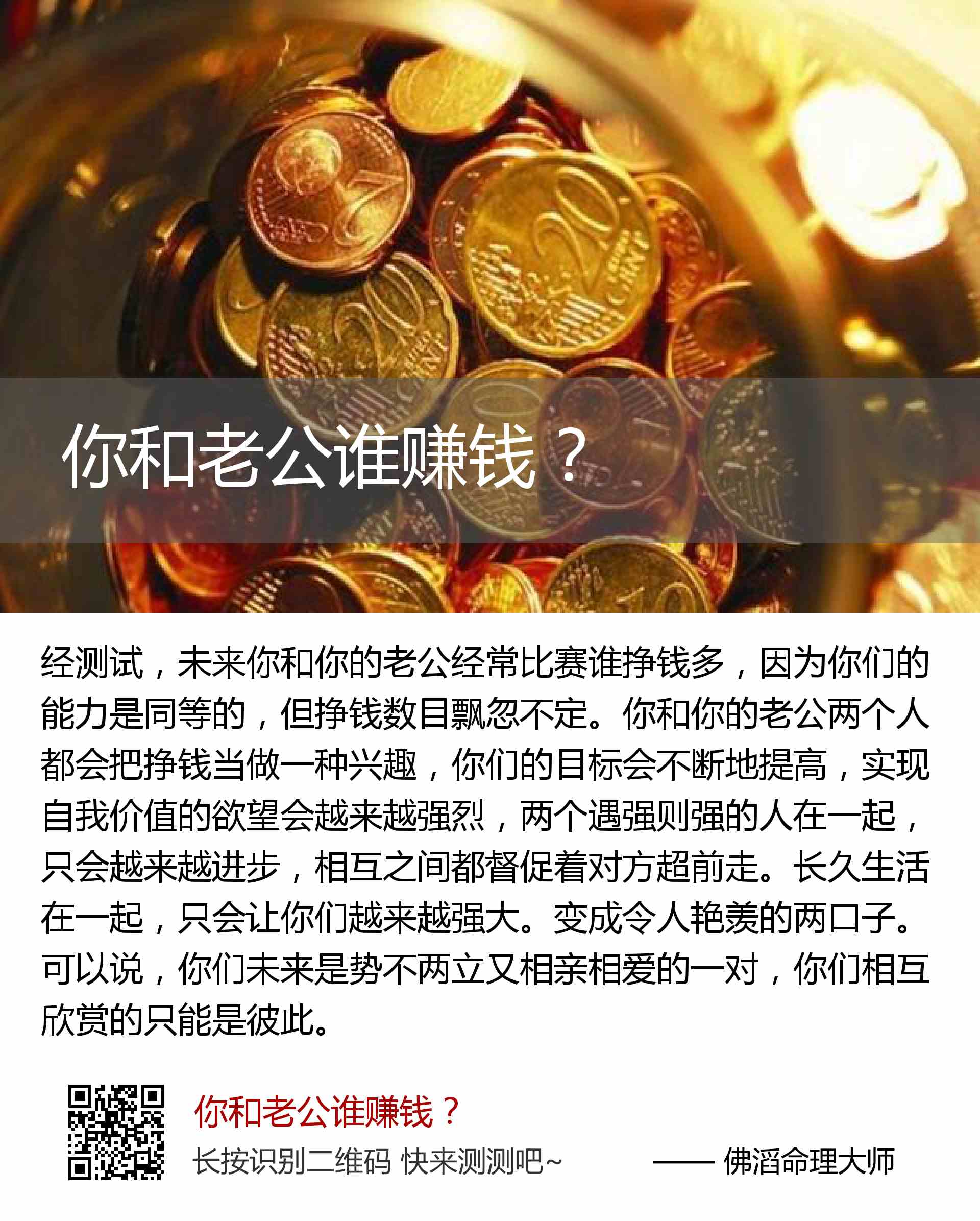未来你和你的老公经常比赛谁挣钱多,因为你们的能力是同等的,但挣钱数目飘忽不定。