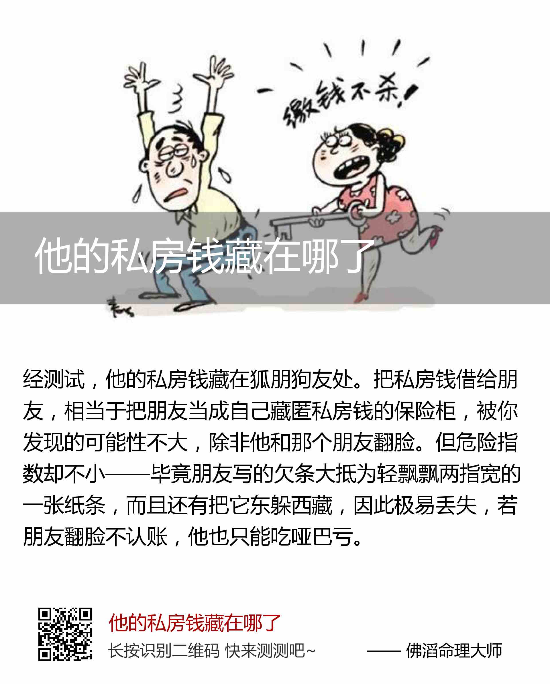 他的私房钱藏在狐朋狗友处。