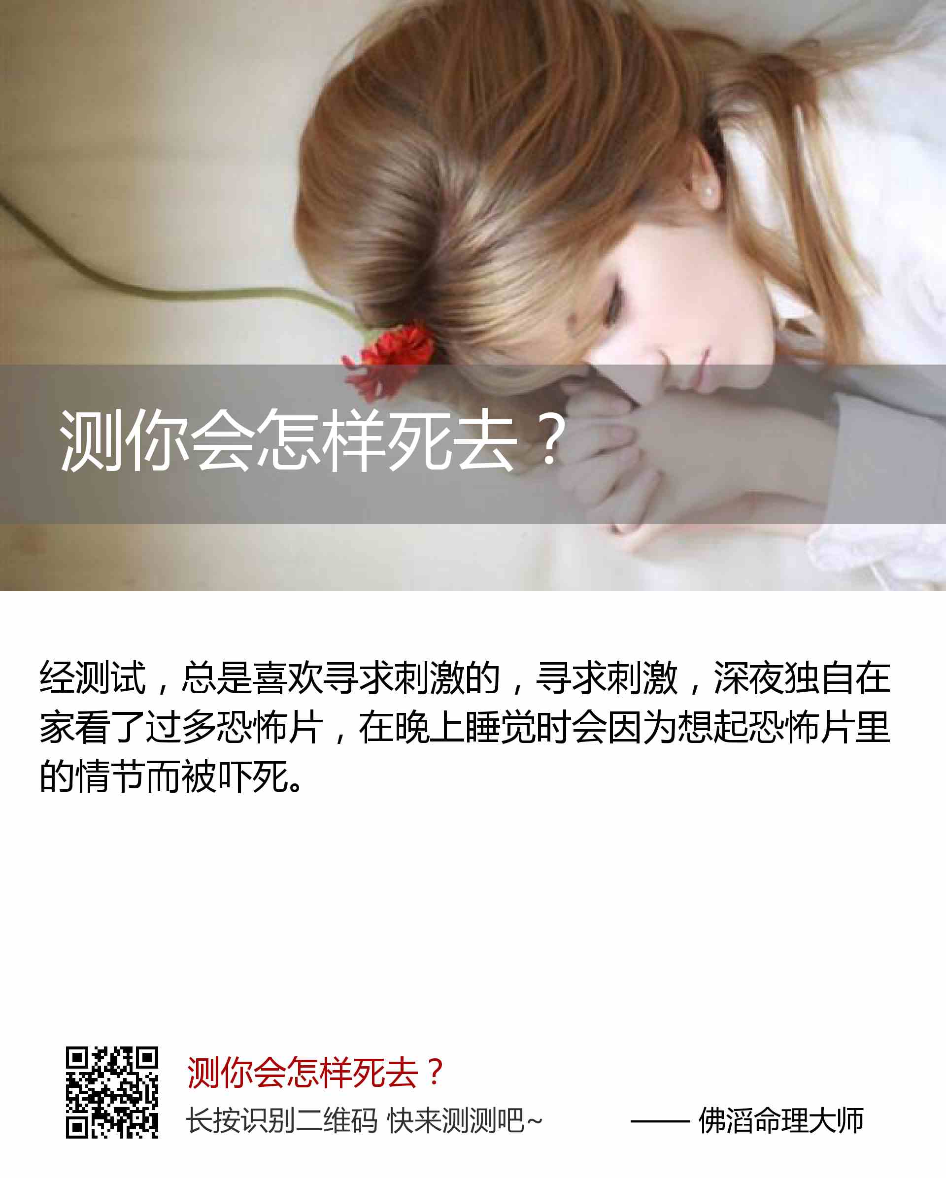 总是喜欢寻求刺激的,寻求刺激,深夜独自在家看了过多恐怖片,在晚上睡觉时会因为想起恐怖片里的情节而被吓死。