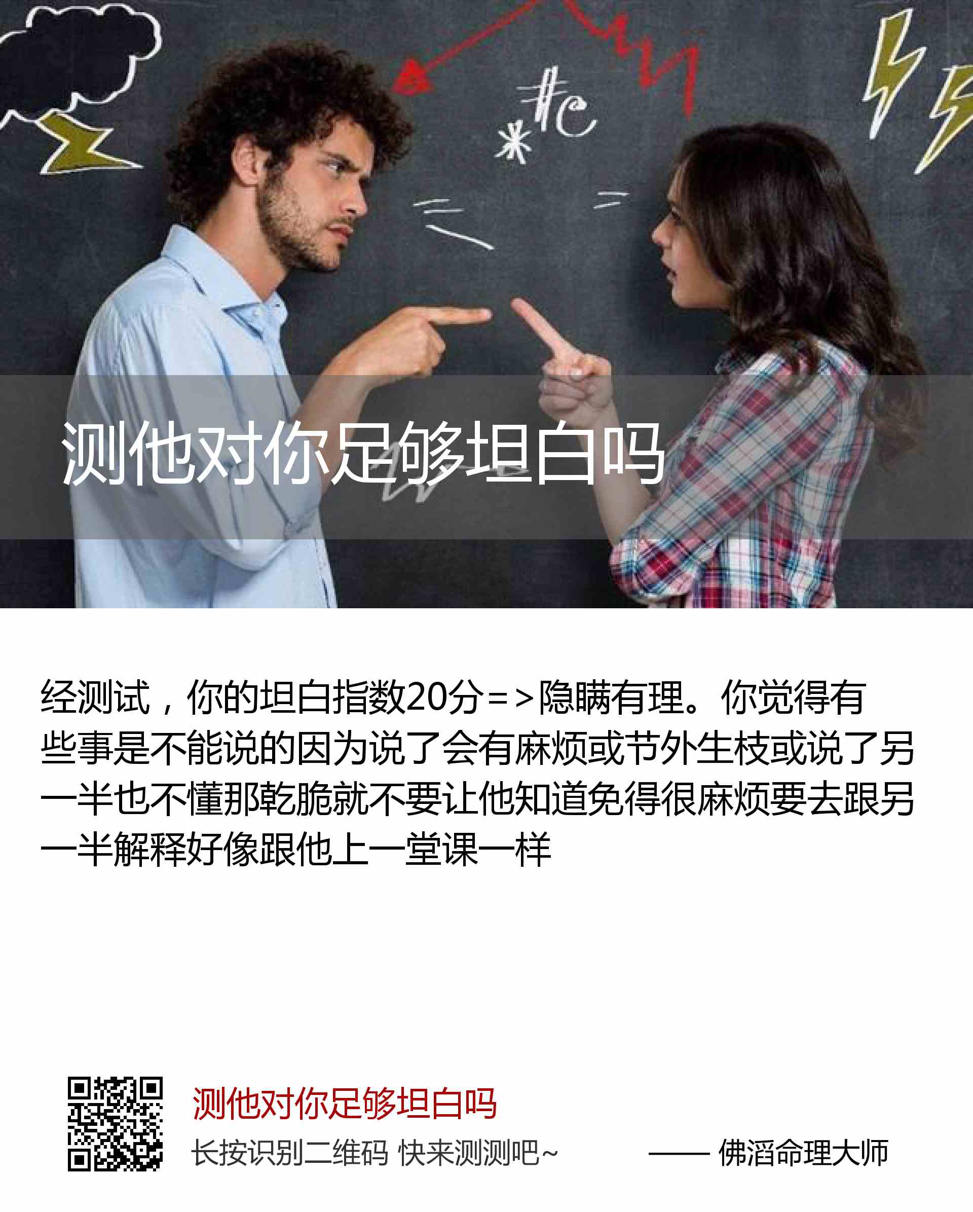你的坦白指数20分=>隐瞒有理。
