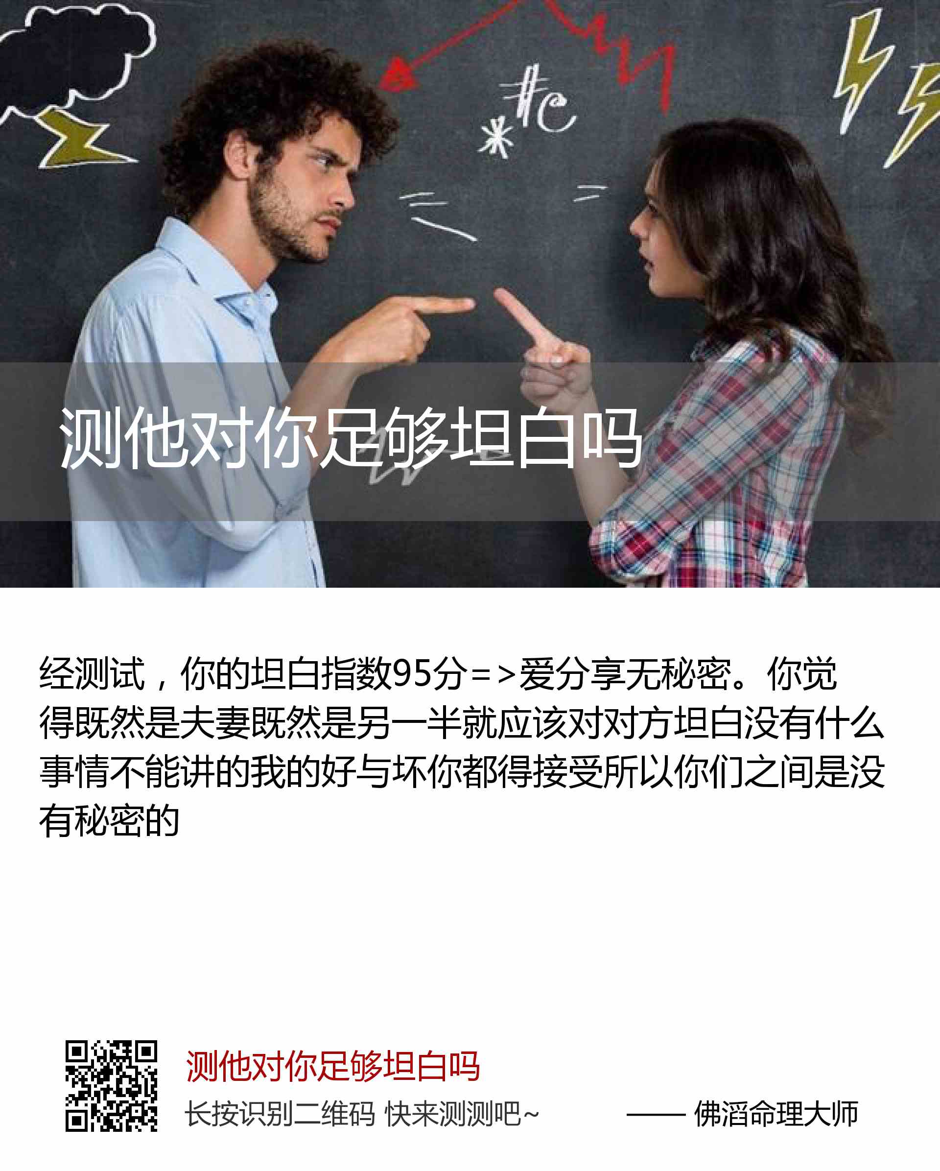 你的坦白指数95分=>爱分享无秘密。