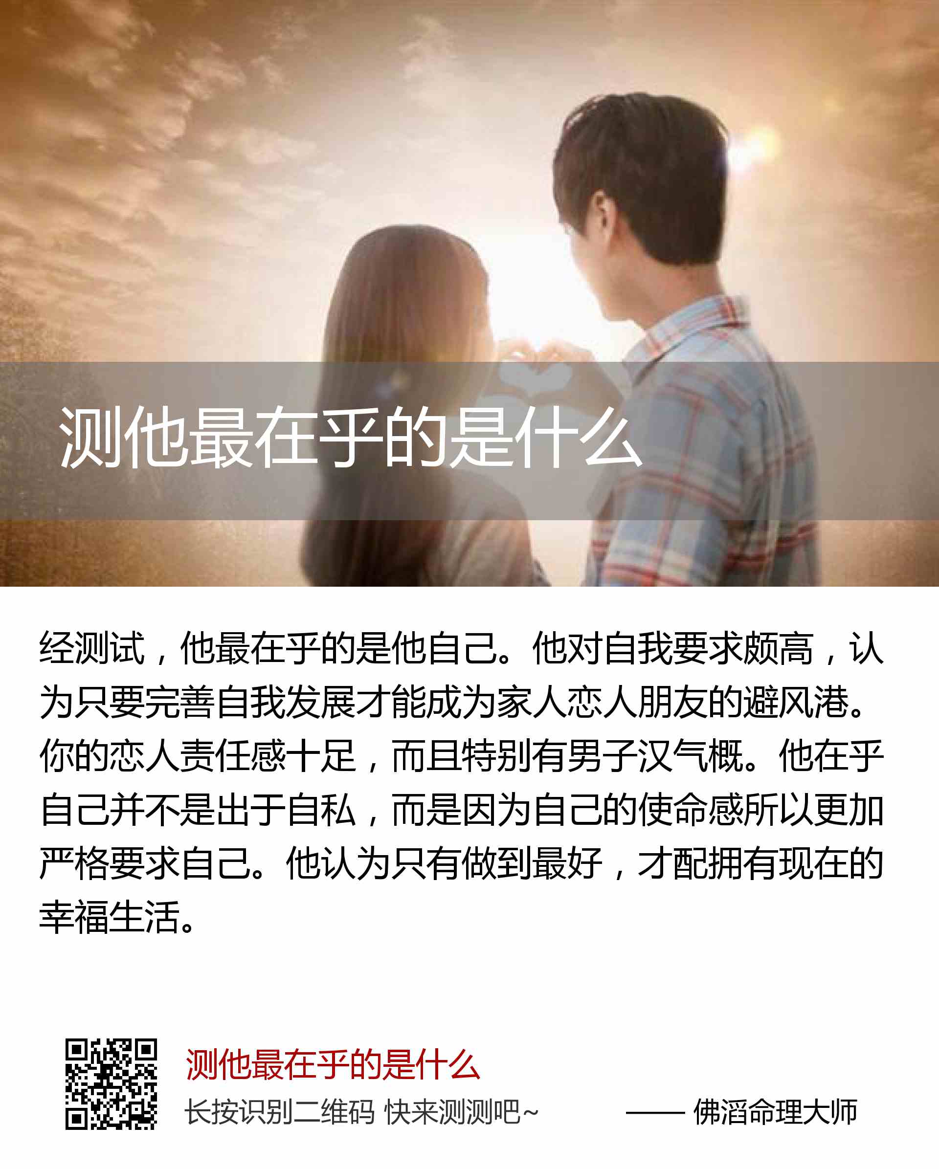 他对自我要求颇高,认为只要完善自我发展才能成为家人恋人朋友的避风港。你的恋人责任感十足,而且特别有男子汉气概。他在乎自己并不是出于自私,而是因为自己的使命感所以更加严格要求自己。他认为只有做到最好,才配拥有现在的幸福生活。