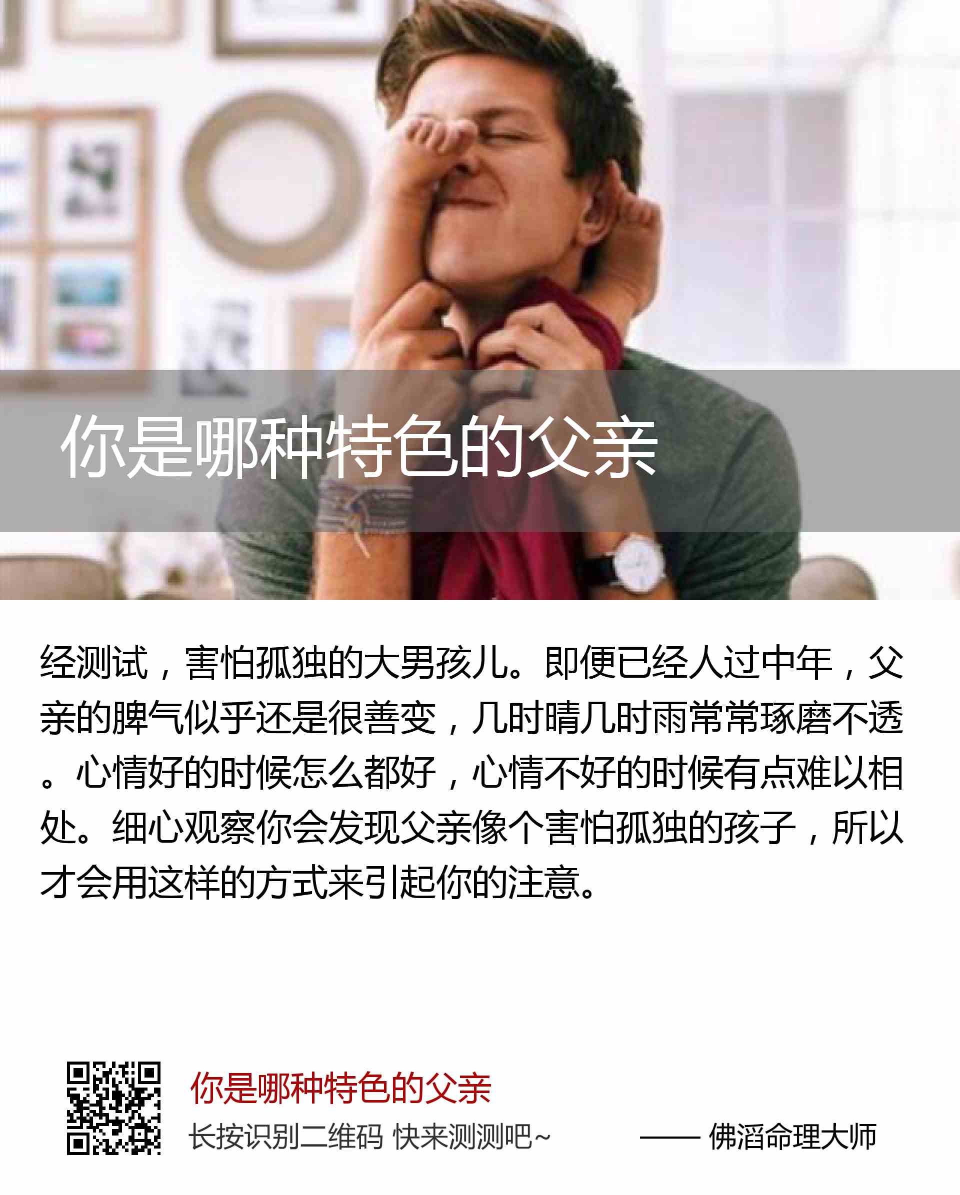 即便已经人过中年,父亲的脾气似乎还是很善变,几时晴几时雨常常琢磨不透。心情好的时候怎么都好,心情不好的时候有点难以相处。细心观察你会发现父亲像个害怕孤独的孩子,所以才会用这样的方式来引起你的注意。