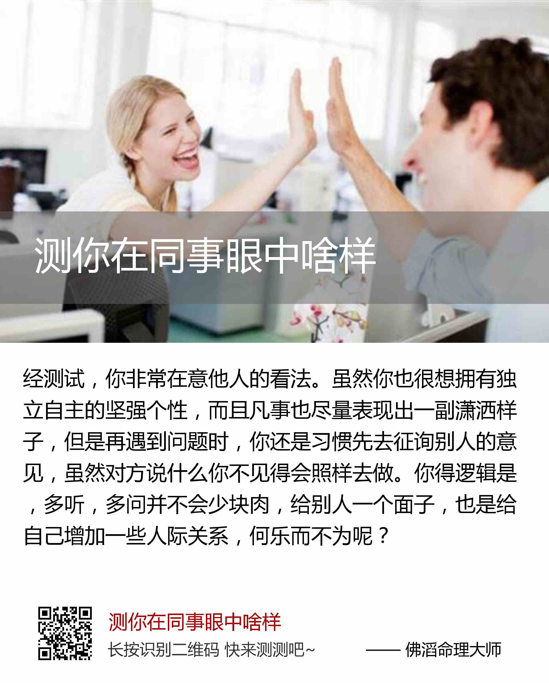 虽然你也很想拥有独立自主的坚强个性,而且凡事也尽量表现出一副潇洒样子,但是再遇到问题时,你还是习惯先去征询别人的意见,虽然对方说什么你不见得会照样去做。你得逻辑是,多听,多问并不会少块肉,给别人一个面子,也是给自己增加一些人际关系,何乐而不为呢?