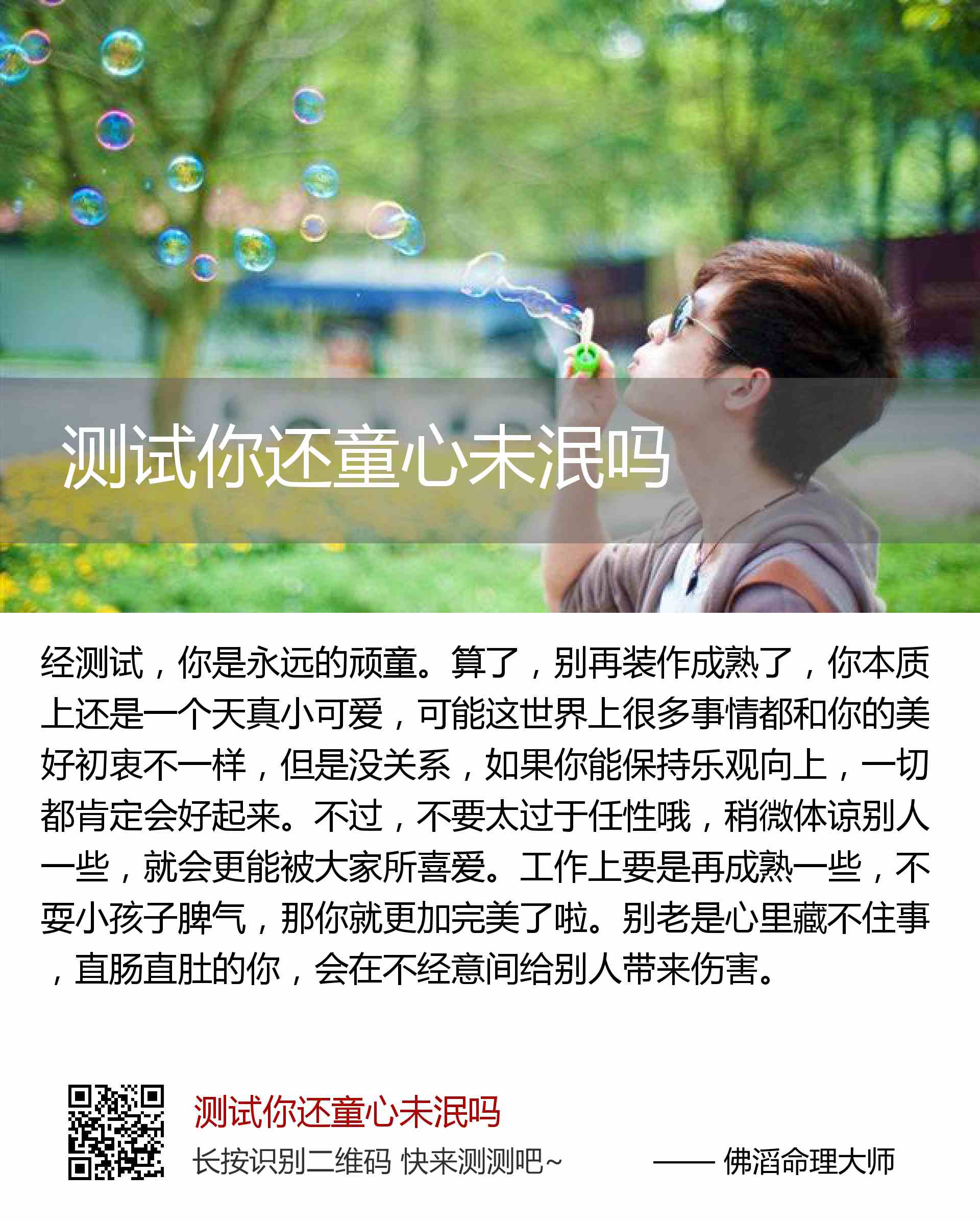 算了,别再装作成熟了,你本质上还是一个天真小可爱,可能这世界上很多事情都和你的美好初衷不一样,但是没关系,如果你能保持乐观向上,一切都肯定会好起来。不过,不要太过于任性哦,稍微体谅别人一些,就会更能被大家所喜爱。工作上要是再成熟一些,不耍小孩子脾气,那你就更加完美了啦。别老是心里藏不住事,直肠直肚的你,会在不经意间给别人带来伤害。