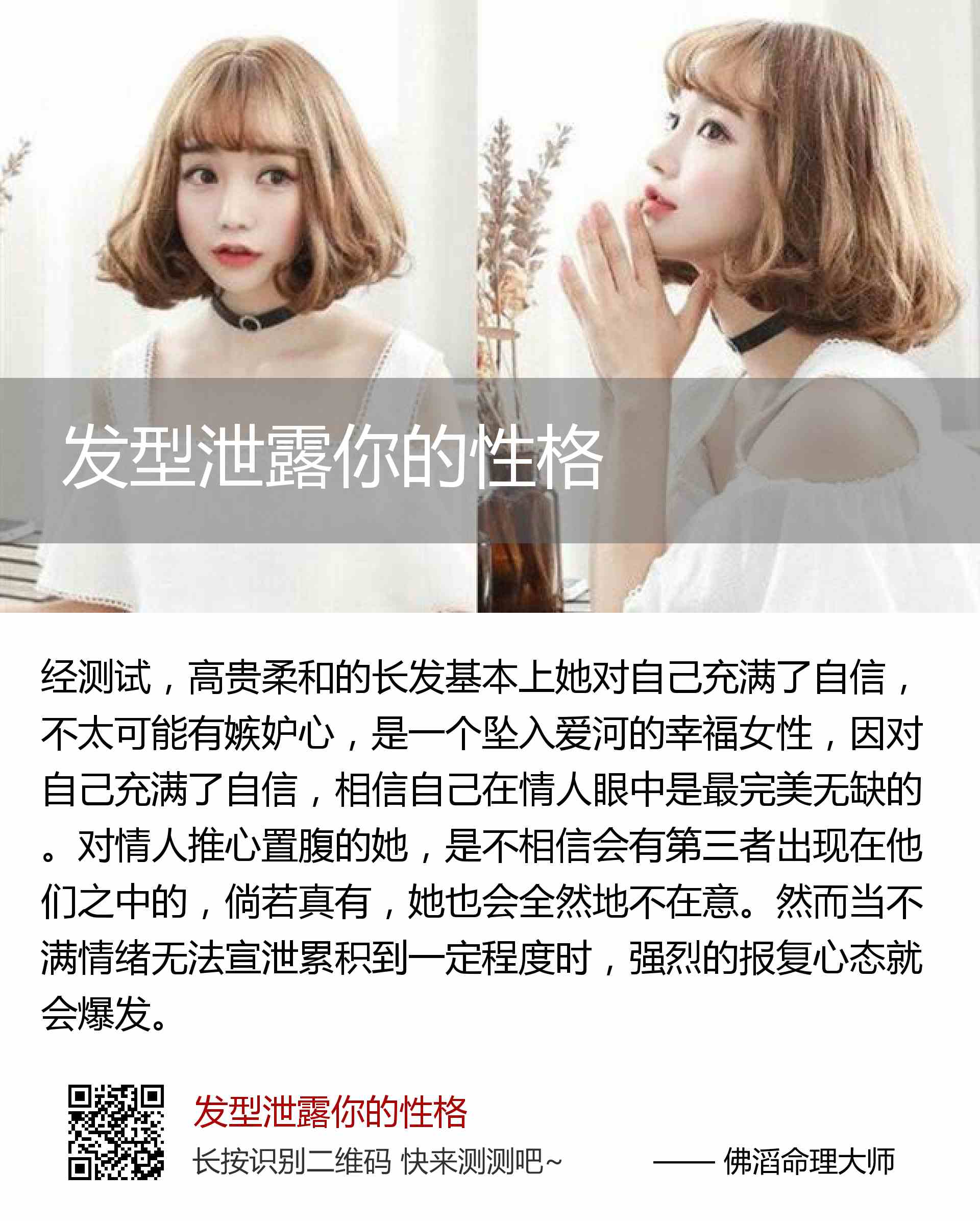 高贵柔和的长发基本上她对自己充满了自信,不太可能有嫉妒心,是一个坠入爱河的幸福女性,因对自己充满了自信,相信自己在情人眼中是最完美无缺的。