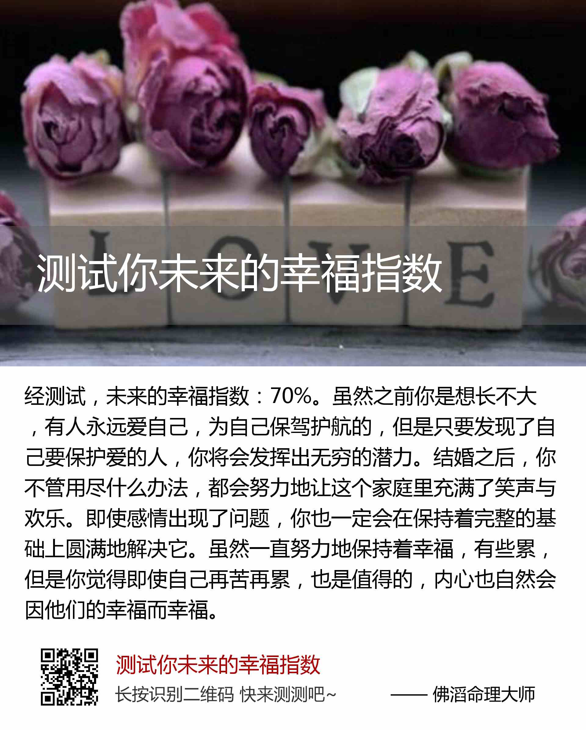 未来的幸福指数:70%。