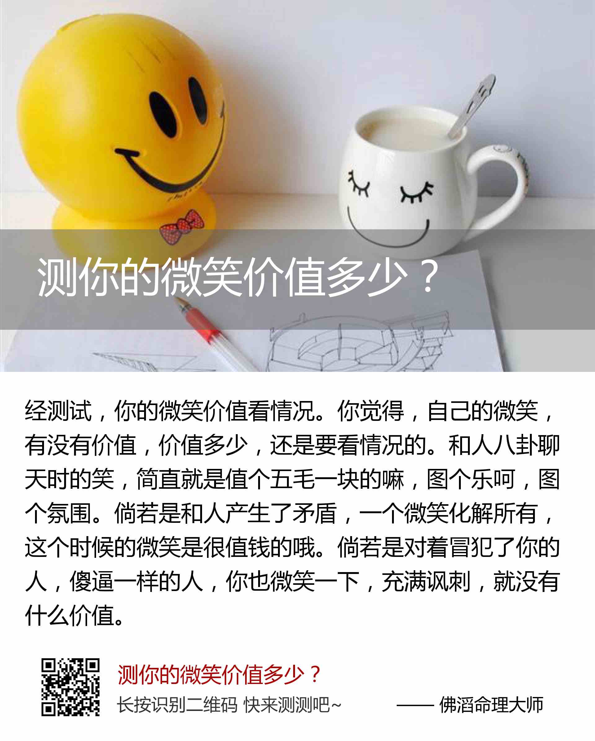你觉得,自己的微笑,有没有价值,价值多少,还是要看情况的。和人八卦聊天时的笑,简直就是值个五毛一块的嘛,图个乐呵,图个氛围。倘若是和人产生了矛盾,一个微笑化解所有,这个时候的微笑是很值钱的哦。倘若是对着冒犯了你的人,傻逼一样的人,你也微笑一下,充满讽刺,就没有什么价值。