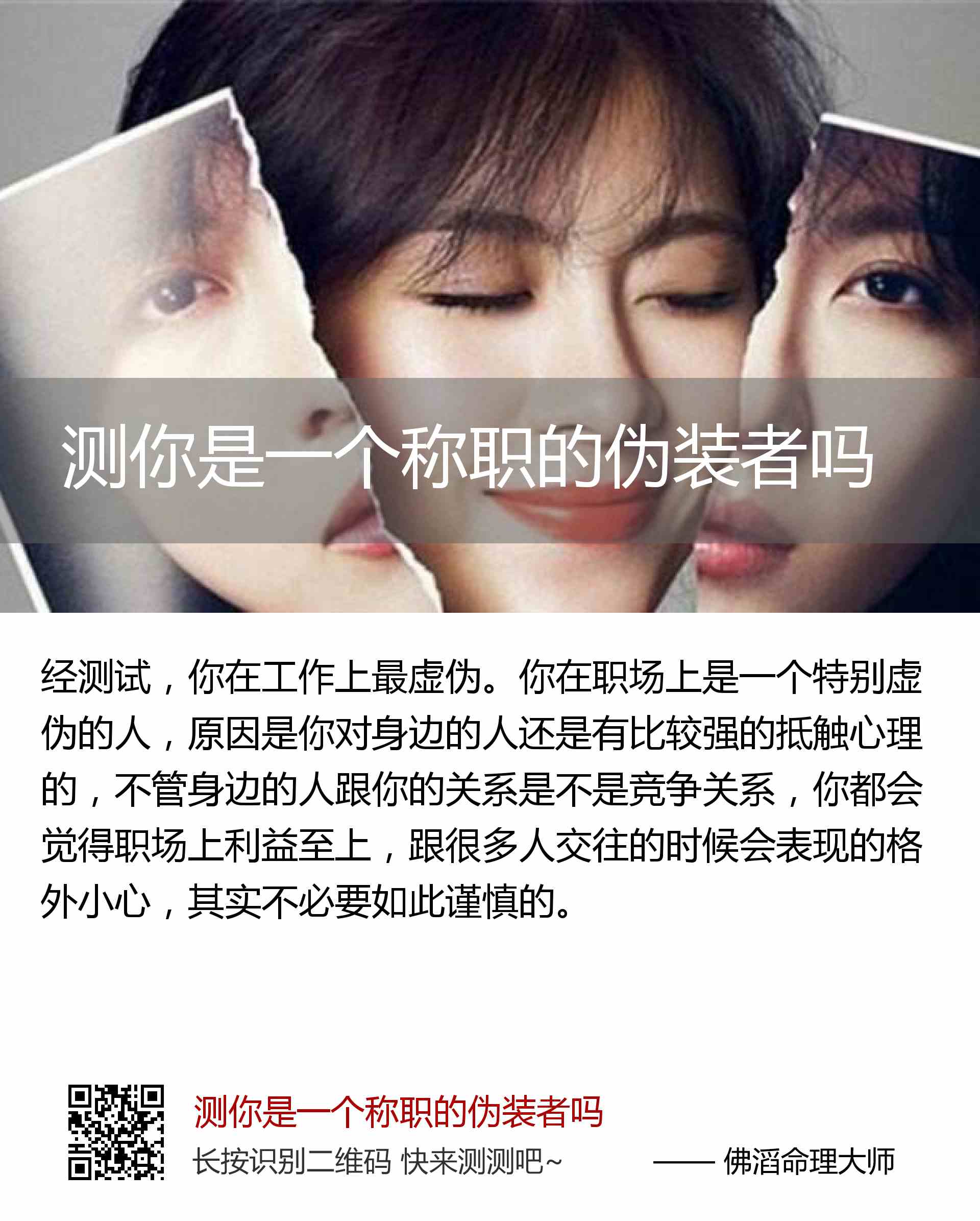 你在职场上是一个特别虚伪的人,原因是你对身边的人还是有比较强的抵触心理的,不管身边的人跟你的关系是不是竞争关系,你都会觉得职场上利益至上,跟很多人交往的时候会表现的格外小心,其实不必要如此谨慎的。