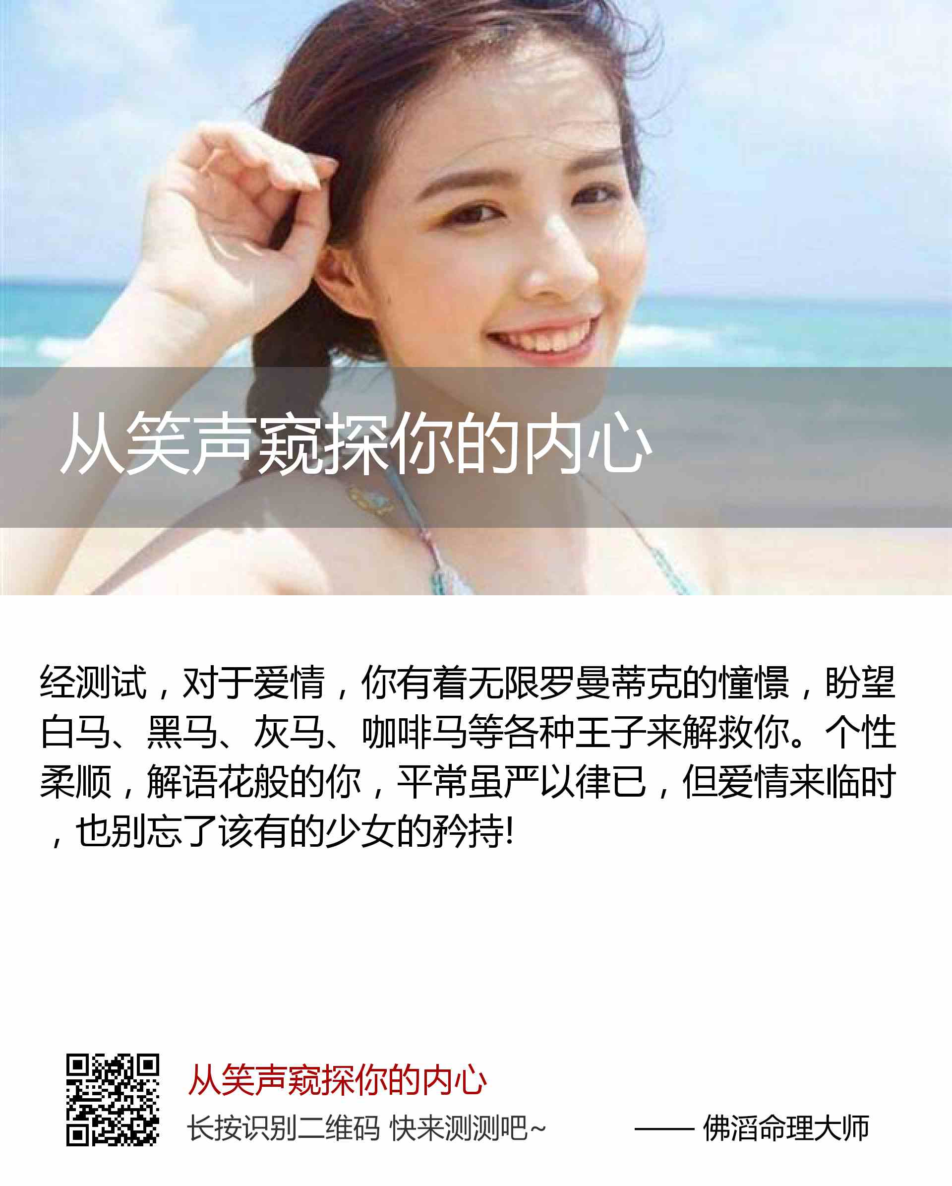 对于爱情,你有着无限罗曼蒂克的憧憬,盼望白马、黑马、灰马、咖啡马等各种王子来解救你。