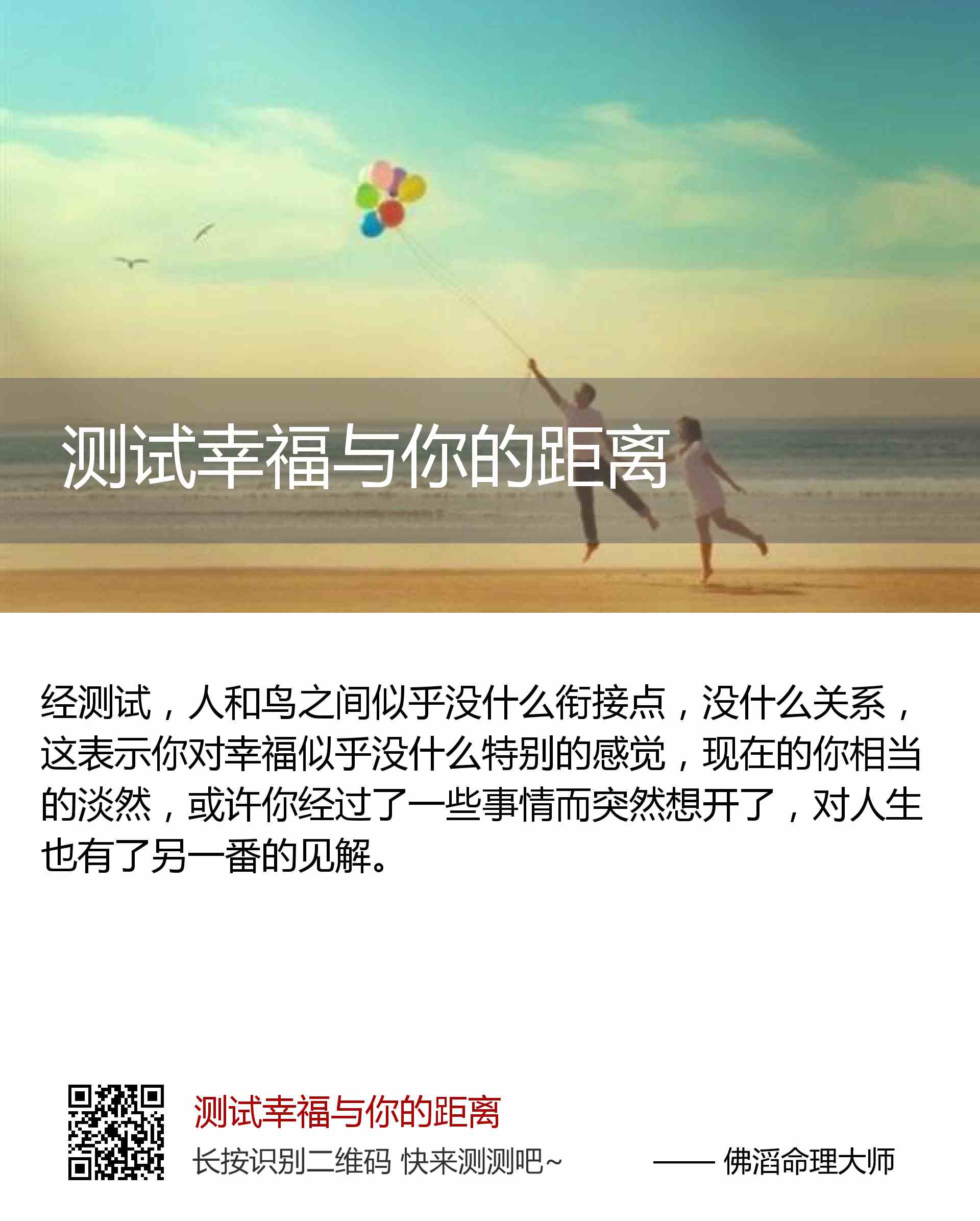 人和鸟之间似乎没什么衔接点,没什么关系,这表示你对幸福似乎没什么特别的感觉,现在的你相当的淡然,或许你经过了一些事情而突然想开了,对人生也有了另一番的见解。