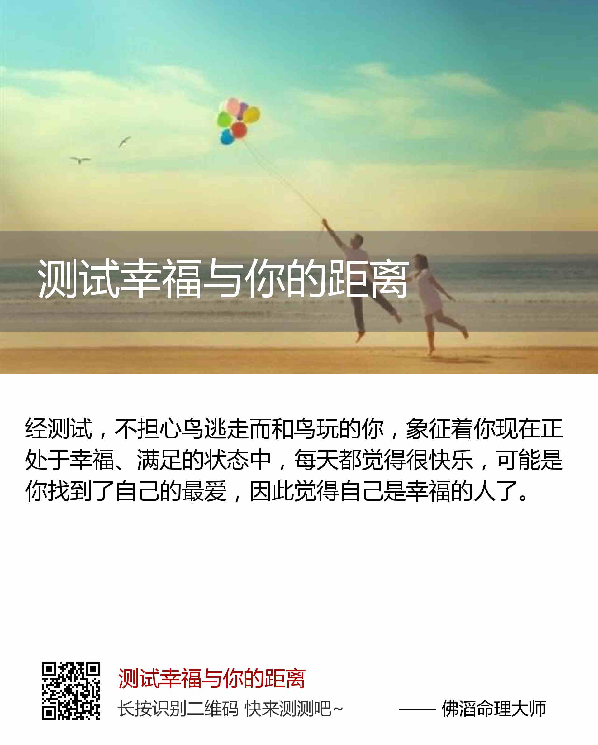 不担心鸟逃走而和鸟玩的你,象征着你现在正处于幸福、满足的状态中,每天都觉得很快乐,可能是你找到了自己的最爱,因此觉得自己是幸福的人了。
