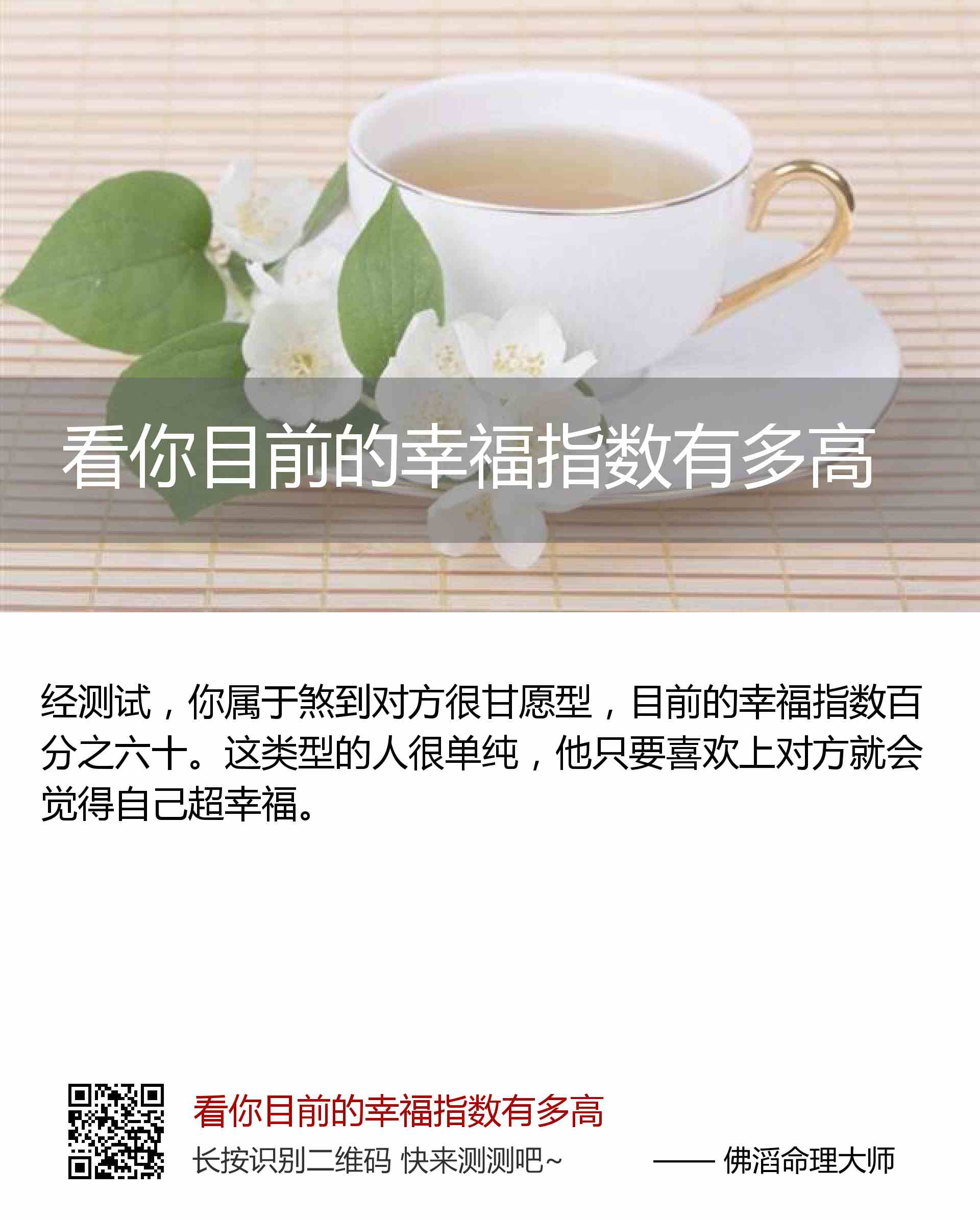 你属于煞到对方很甘愿型,目前的幸福指数百分之六十。