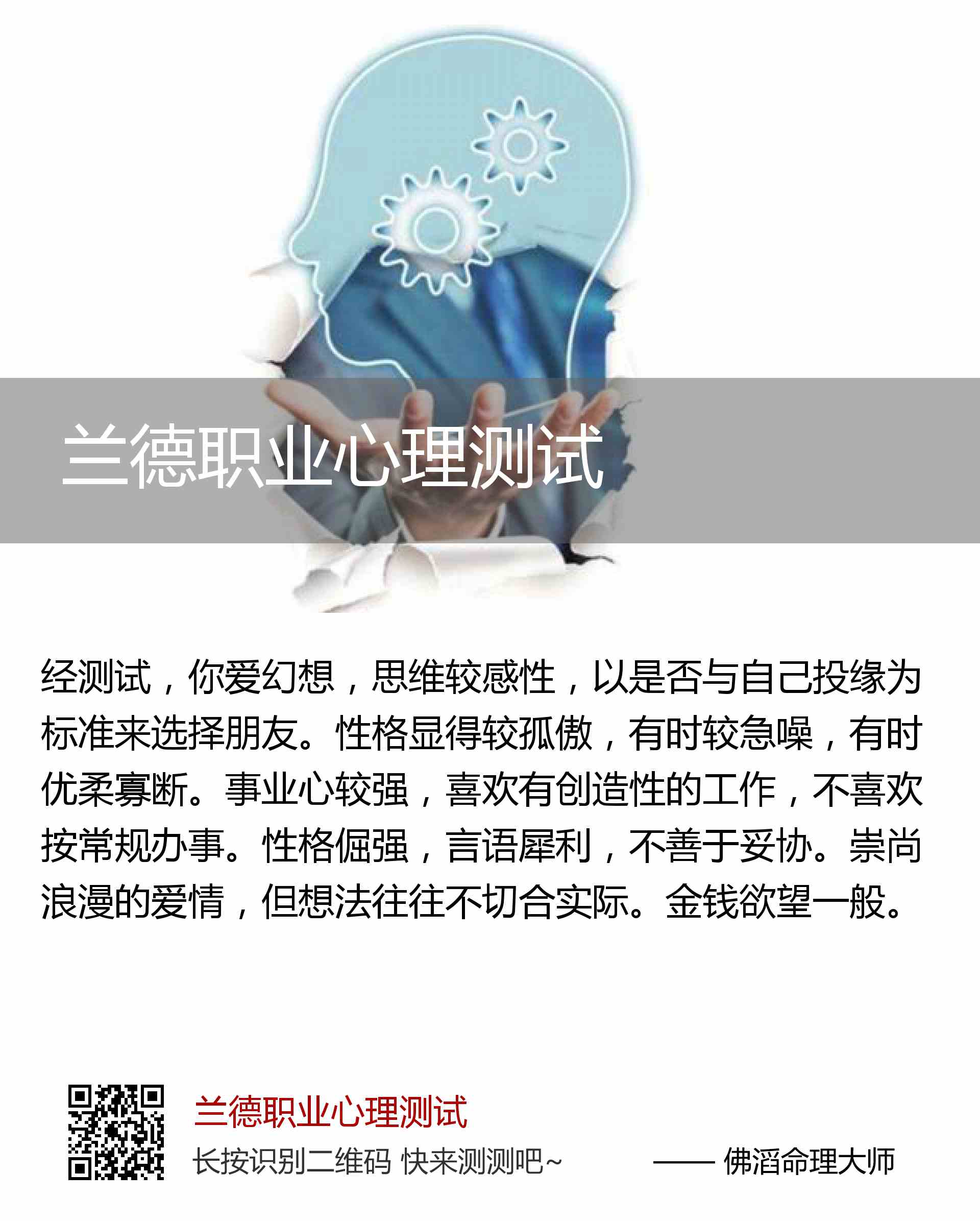 你爱幻想,思维较感性,以是否与自己投缘为标准来选择朋友。