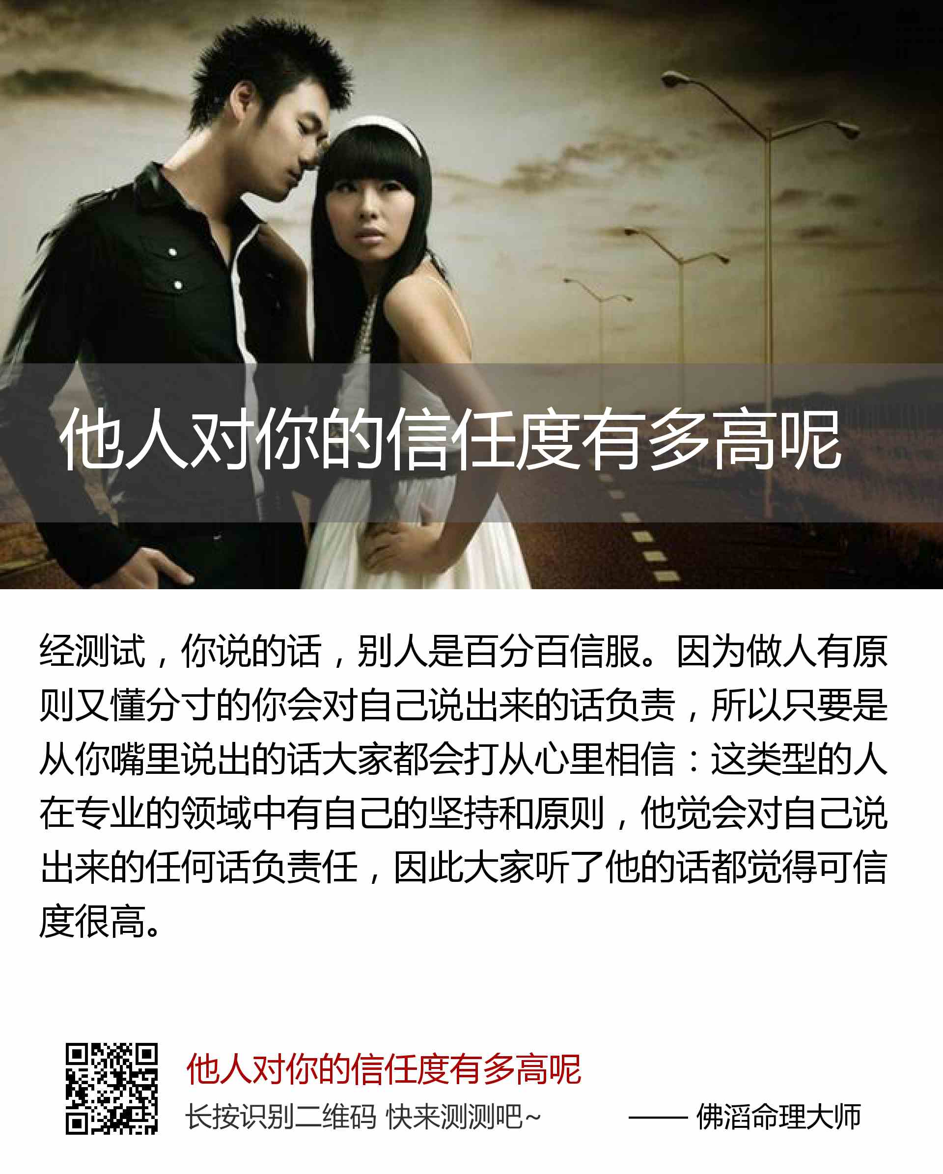 因为做人有原则又懂分寸的你会对自己说出来的话负责,所以只要是从你嘴里说出的话大家都会打从心里相信:这类型的人在专业的领域中有自己的坚持和原则,他觉会对自己说出来的任何话负责任,因此大家听了他的话都觉得可信度很高。