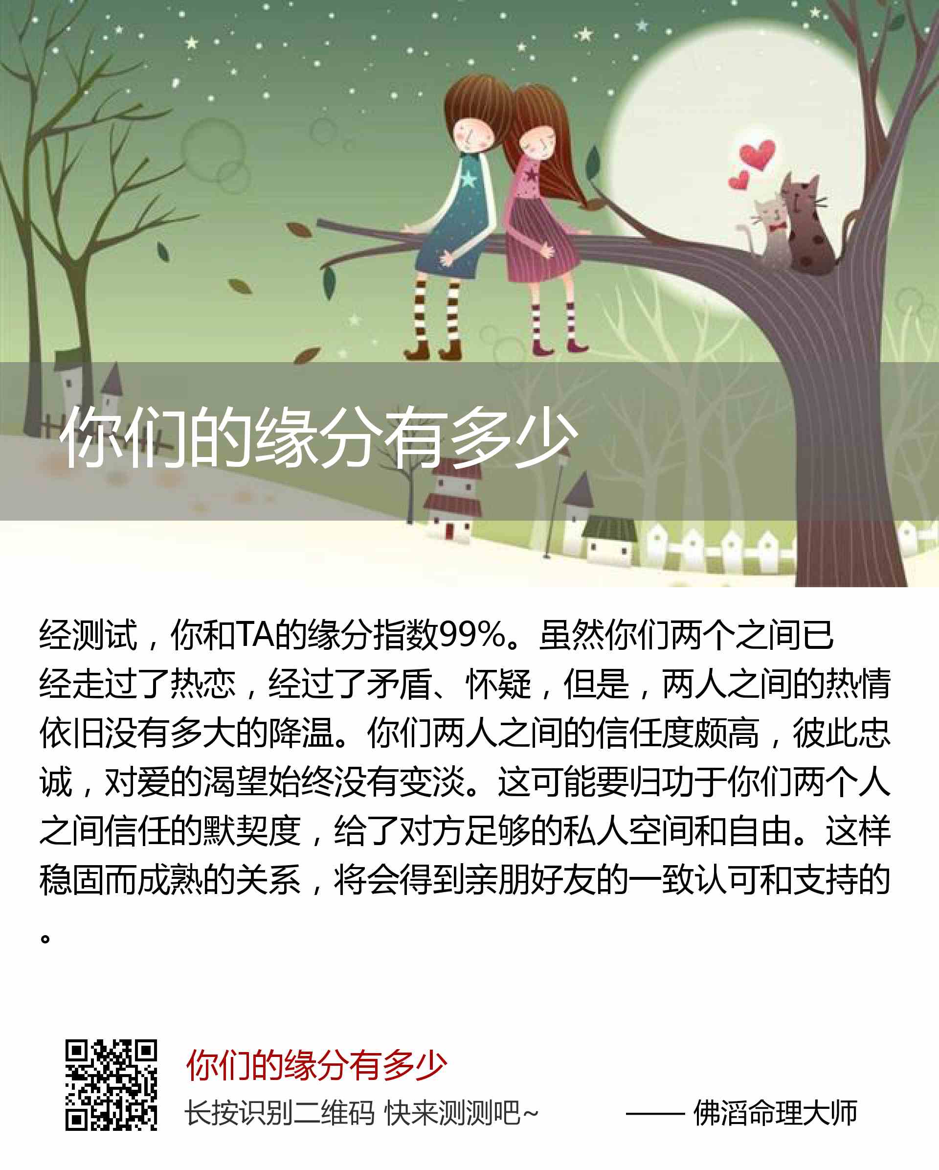 你和TA的缘分指数99%。