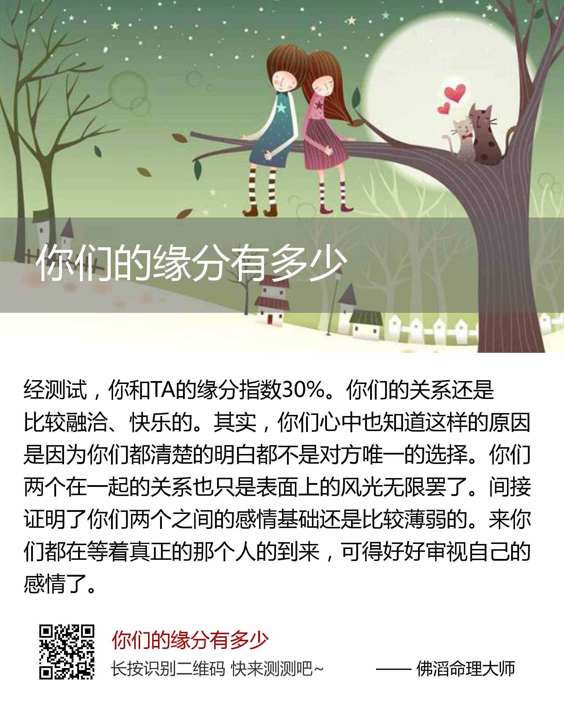 你们的关系还是比较融洽、快乐的。其实,你们心中也知道这样的原因是因为你们都清楚的明白都不是对方唯一的选择。你们两个在一起的关系也只是表面上的风光无限罢了。间接证明了你们两个之间的感情基础还是比较薄弱的。来你们都在等着真正的那个人的到来,可得好好审视自己的感情了。