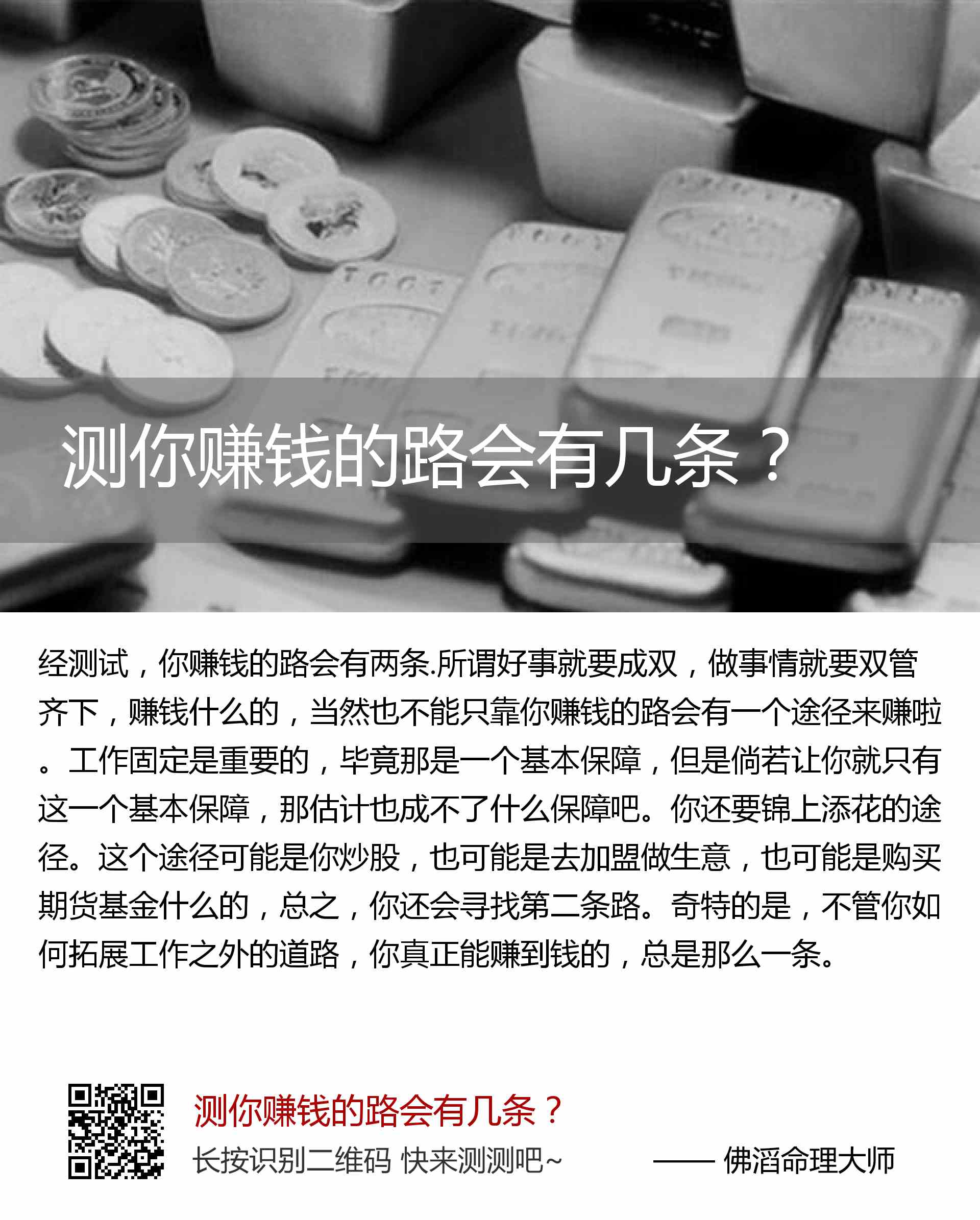 > 测你赚钱的路会有几条?