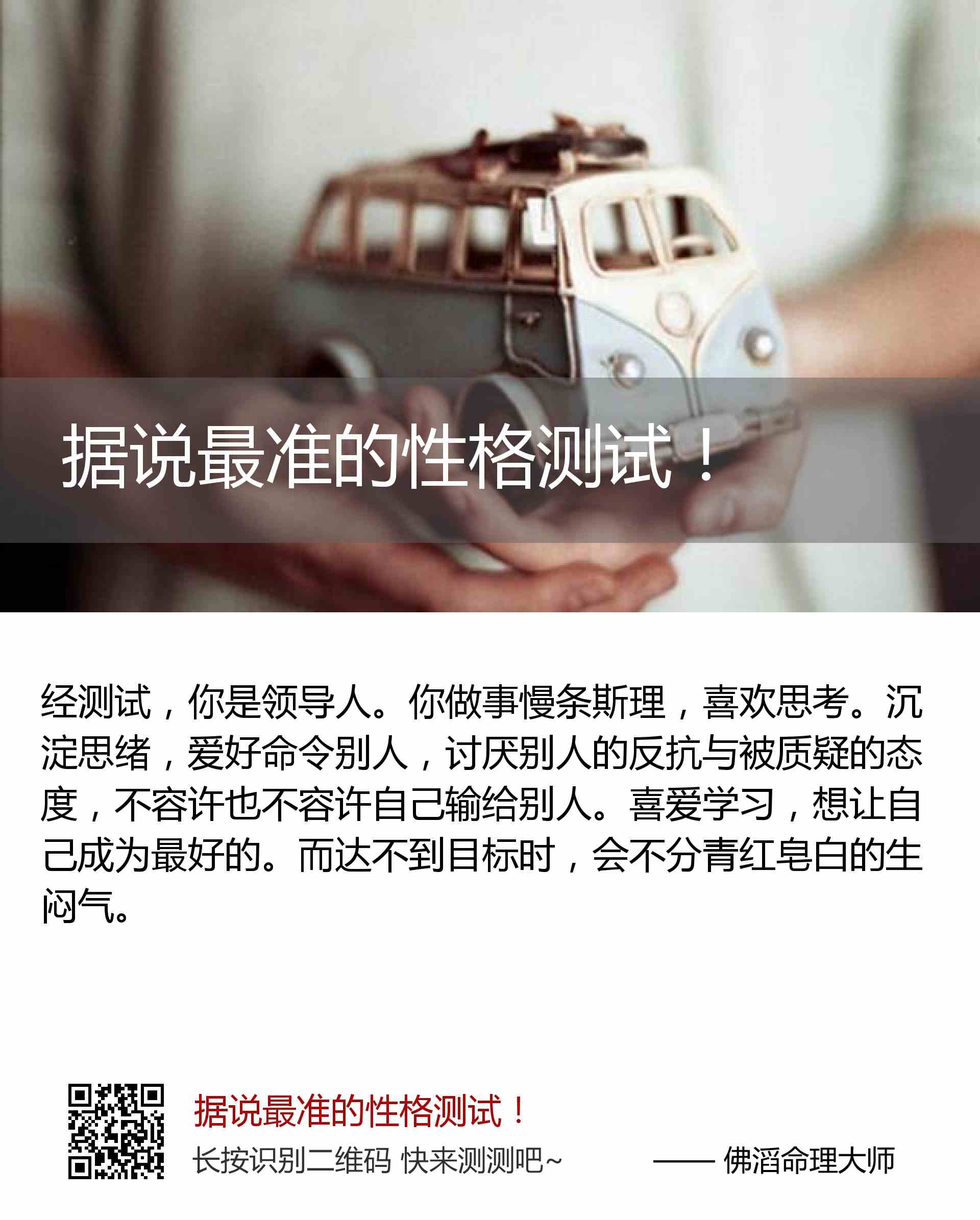 你做事慢条斯理,喜欢思考。沉淀思绪,爱好命令别人,讨厌别人的反抗与被质疑的态度,不容许也不容许自己输给别人。喜爱学习,想让自己成为最好的。而达不到目标时,会不分青红皂白的生闷气。